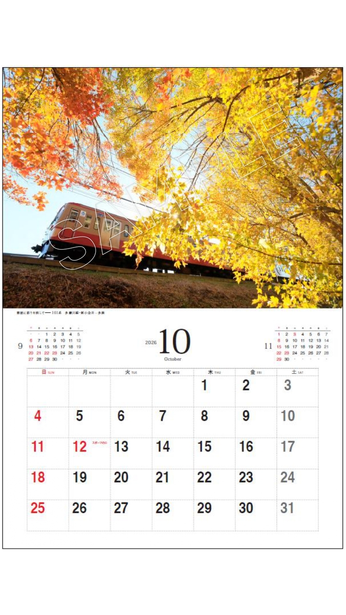 2026年西武鉄道カレンダー「電車のある風景。」 西武鉄道カレンダーは、「電車のある風景。」をテーマに沿線にある季節の花々や紅葉など四季折々の風景を西武鉄道の車両とともに紹介しています。2026年の表紙は、青空のもと、狭山市駅と新狭山駅間を進む10000系が印象的なデザインです。生活に寄り添う当社の様々な車両と、何気ない日常をささやかに彩る自然豊かな沿線の風景を存分にお楽しみいただくことができる壁掛け型のカレンダーです。 販売価格 1,700円(税込み) 会員価格 (税込み) 通常価格 (税込み) 在庫 ○ 商品コード 00385 JANコード 4541060943341 数量 - + 販売期間外のため注文いただけません。 カテゴリー 雑貨 販売期間 2025/10/11 09:00~ 見開きA2判 7枚綴りカレンダー(2026年1月~12月)※サイズ仕様は2025年度版と同じです発売元:株式会社プロスパ (西武鉄道株式会社商品化許諾済) 商品一覧CATEGORY すべての商品 プラレール・玩具 鉄道模型・鉄道コレクション 文具 ファッション・バッグ 鉄下 Tシャツ 雑貨 ランチグッズ キーホルダー コラボグッズ 小田急8000形 ぎょうざの満洲 種別板・方向幕 鉄道むすめ 座席シート布など端材活用製品 食品 2025年10月 日 月 火 水 木 金 土 1 2 3 4 5 6 7 8 9 10 11 12 13 14 15 16 17 18 19 20 21 22 23 24 25 26 27 28 29 30 31 2025年11月 日 月 火 水 木 金 土 1 2 3 4 5 6 7 8 9 10 11 12 13 14 15 16 17 18 19 20 21 22 23 24 25 26 27 28 29 30 ショップ休業日