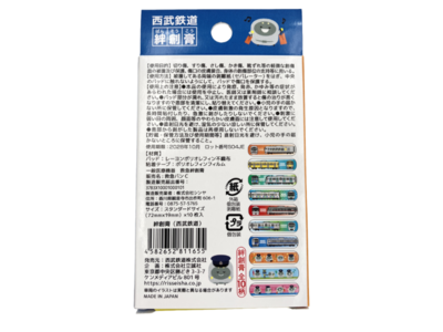 絆創膏(西武鉄道) 10枚入りで1枚1枚デザインが違うばんそうこうが入っています。※1回のご注文に付き5個までとさせていただきます。 販売価格 440円(税込み) 会員価格 (税込み) 通常価格 (税込み) 在庫 ○ 商品コード 81165 JANコード 4582652811655 数量 1 2 3 4 5 販売期間外のため注文いただけません。 カテゴリー 雑貨 注文数制限 0 ~ 5 販売期間 2025/12/14 10:00~ ●サイズ 絆創膏:72×19mm パッケージ:約W63×H113×D15mm おすすめ商品Recommendations 電タルブラシ 40000系(西武鉄道) 440円(税込み) ぷに鉄シール(西武鉄道) 500円(税込み) 電タルブラシ らびゅーくん(西武鉄道) 440円(税込み) 電タルブラシ 2000系(西武鉄道) 440円(税込み) マスコットキーチェーン(らびゅーくん) 1,760円(税込み) 鉄下 西武鉄道 2000系 440円(税込み) 鉄下プレミアム 西武鉄道 001系 特急ラビュー 605円(税込み) 鉄下 西武鉄道 40000系 440円(税込み) 鉄下 西武鉄道 30000系 440円(税込み) ループタオル(西武鉄道 イエロー) 880円(税込み) 鉄下 西武鉄道 ニューレッドアロー 440円(税込み) ループタオル(西武鉄道 ブルー) 880円(税込み) 商品一覧CATEGORY すべての商品 プラレール・玩具 鉄道模型・鉄道コレクション 文具 ファッション・バッグ 鉄下 Tシャツ 雑貨 ランチグッズ キーホルダー コラボグッズ 小田急8000形 ぎょうざの満洲 種別板・方向幕 鉄道むすめ 座席シート布など端材活用製品 2025年12月 日 月 火 水 木 金 土 1 2 3 4 5 6 7 8 9 10 11 12 13 14 15 16 17 18 19 20 21 22 23 24 25 26 27 28 29 30 31 2026年01月 日 月 火 水 木 金 土 1 2 3 4 5 6 7 8 9 10 11 12 13 14 15 16 17 18 19 20 21 22 23 24 25 26 27 28 29 30 31 ショップ休業日