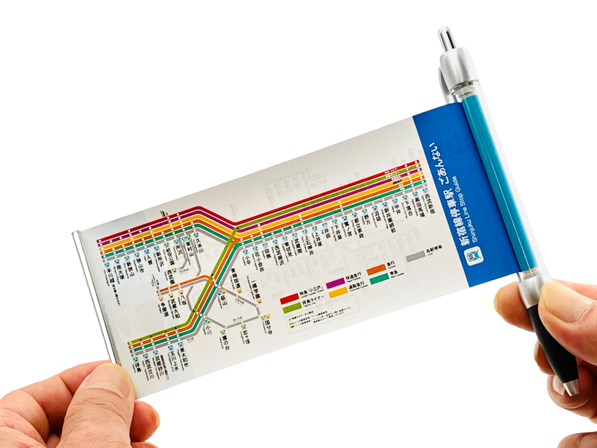 西武鉄道路線図ボールペン(新宿線停車駅案内) 30000系車両がデザインされている「ボールペン」です。引っ張ると表は「西武鉄道路線図」が出ます。引っ張ると裏は「新宿線停車駅案内」が出ます。※この商品は「新宿線停車駅案内」です。 販売価格 500円(税込み) 会員価格 (税込み) 通常価格 (税込み) 在庫 ○ 商品コード 00383 JANコード 4541060789475 数量 - + カートに入れる カテゴリー 文具 販売期間 2025/12/20 10:00~ サイズ:140㎜※発売元 株式会社 プロスパ (西武鉄道株式会社商品化許諾済) おすすめ商品Recommendations 西武鉄道B5スケッチブック 600円(税込み) 西武鉄道路線図ボールペン(池袋線停車駅案内) 500円(税込み) 電車型ペンケース(西武鉄道2000系) 1,500円(税込み) 電車型ペンケース(西武鉄道40000系) 1,500円(税込み) 商品一覧CATEGORY すべての商品 プラレール・玩具 鉄道模型・鉄道コレクション 文具 ファッション・バッグ 鉄下 Tシャツ 雑貨 ランチグッズ キーホルダー コラボグッズ 小田急8000形 ぎょうざの満洲 種別板・方向幕 鉄道むすめ 座席シート布など端材活用製品 2025年12月 日 月 火 水 木 金 土 1 2 3 4 5 6 7 8 9 10 11 12 13 14 15 16 17 18 19 20 21 22 23 24 25 26 27 28 29 30 31 2026年01月 日 月 火 水 木 金 土 1 2 3 4 5 6 7 8 9 10 11 12 13 14 15 16 17 18 19 20 21 22 23 24 25 26 27 28 29 30 31 ショップ休業日