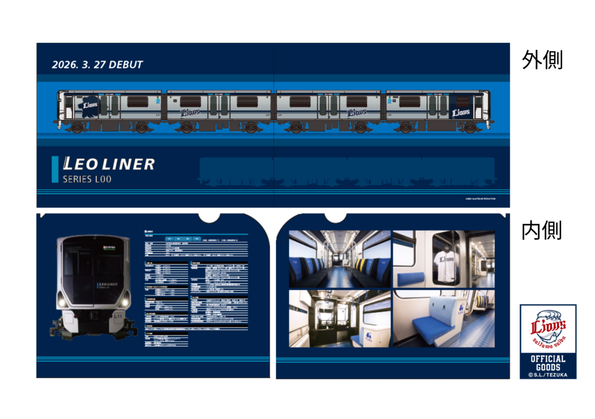 新型レオライナー「L00系」デビュー記念 ダブルポケットクリアファイル 新型レオライナー「L00系」2026年3月27日デビュー!運行開始に合わせて新型レオライナー「L00系」デビュー記念グッズを販売いたします。新型レオライナー「L00系」がデザインされたダブルポケットクリアファイルです。展開すると表面は4両の車両側面デザイン、内側は車両のスペック・内装写真がデザインされています。※1回のご注文に付き1個までとさせていただきます。※商品入庫の都合上、早めに売り切れとなる場合がございます。 販売価格 990円(税込み) 会員価格 (税込み) 通常価格 (税込み) 在庫 ○ 商品コード 81180 JANコード 4582652811808 数量 1 販売期間外のため注文いただけません。 カテゴリー 新型レオライナー「L00系」 注文数制限 0 ~ 1 販売期間 2026/05/02 10:00~ ・本体サイズ:A4(展開時620×220mm)・素材:PP おすすめ商品Recommendations 新型レオライナー「L00系」デビュー記念 アルミプレート(実車) 1,980円(税込み) 新型レオライナー「L00系」デビュー記念 アルミプレート(イラスト) 1,980円(税込み) 御朱印帳(西武鉄道×西武秩父駅前温泉 祭の湯) 1,980円(税込み) 電車型ペンケース(西武鉄道40000系) 1,500円(税込み) 西武鉄道B5スケッチブック 600円(税込み) 西武鉄道路線図ボールペン(池袋線停車駅案内) 500円(税込み) 西武鉄道路線図ボールペン(新宿線停車駅案内) 500円(税込み) 商品一覧CATEGORY すべての商品 プラレール・玩具 鉄道模型・鉄道コレクション 文具 ファッション・バッグ 鉄下 Tシャツ 雑貨 ランチグッズ キーホルダー コラボグッズ 小田急8000形 ぎょうざの満洲 新型レオライナー「L00系」 種別板・方向幕 鉄道むすめ 座席シート布など端材活用製品 2026年04月 日 月 火 水 木 金 土 1 2 3 4 5 6 7 8 9 10 11 12 13 14 15 16 17 18 19 20 21 22 23 24 25 26 27 28 29 30 2026年05月 日 月 火 水 木 金 土 1 2 3 4 5 6 7 8 9 10 11 12 13 14 15 16 17 18 19 20 21 22 23 24 25 26 27 28 29 30 31 ショップ休業日